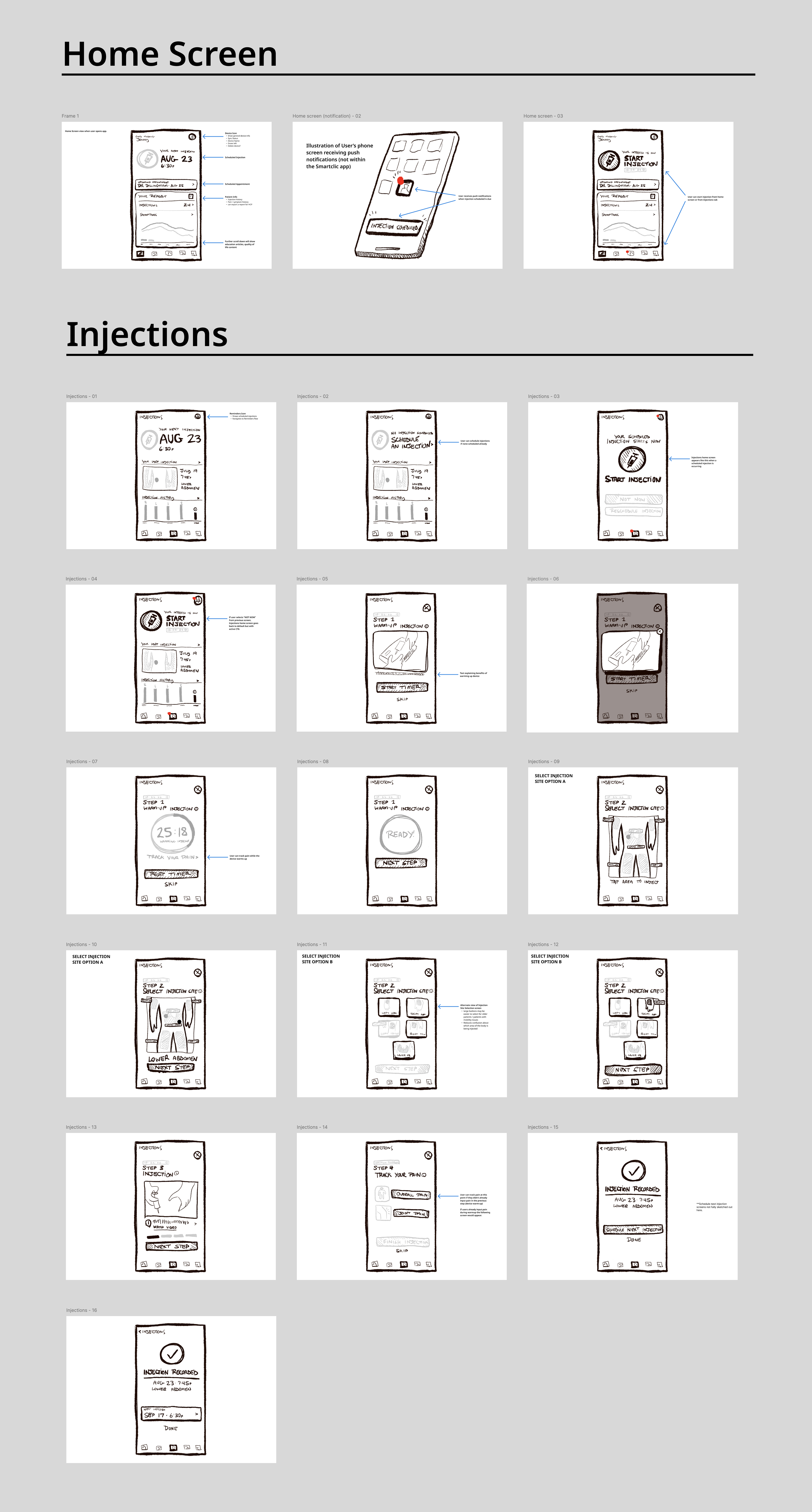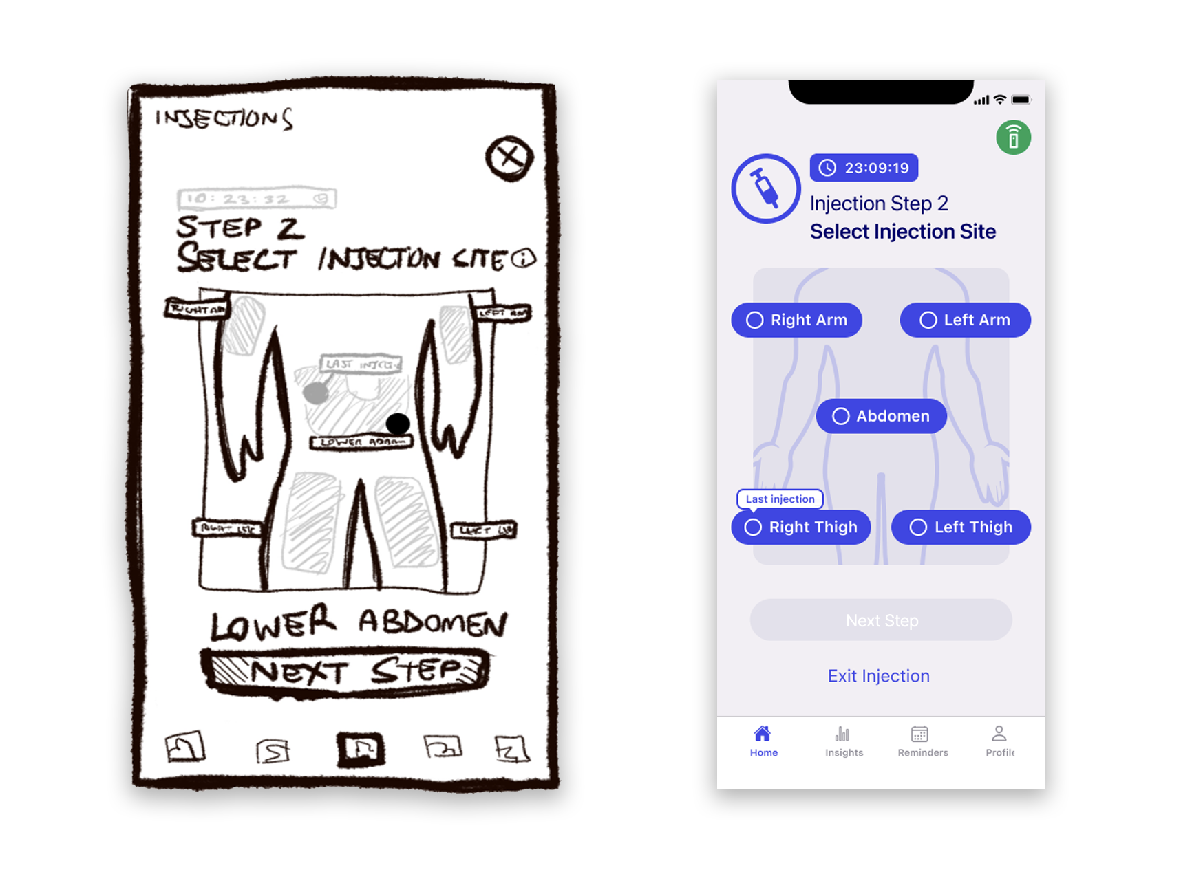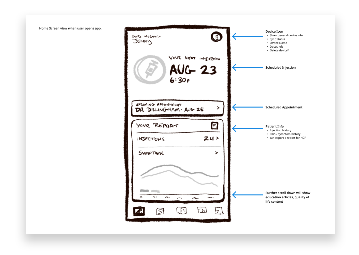 I lead the UX and UI design for a white label app that would help patients record and track injections in association with a co-branded consumer injectable device. The designs were developed to allow for brand-specific elements (colors, fonts, etc) to be incorporated later.