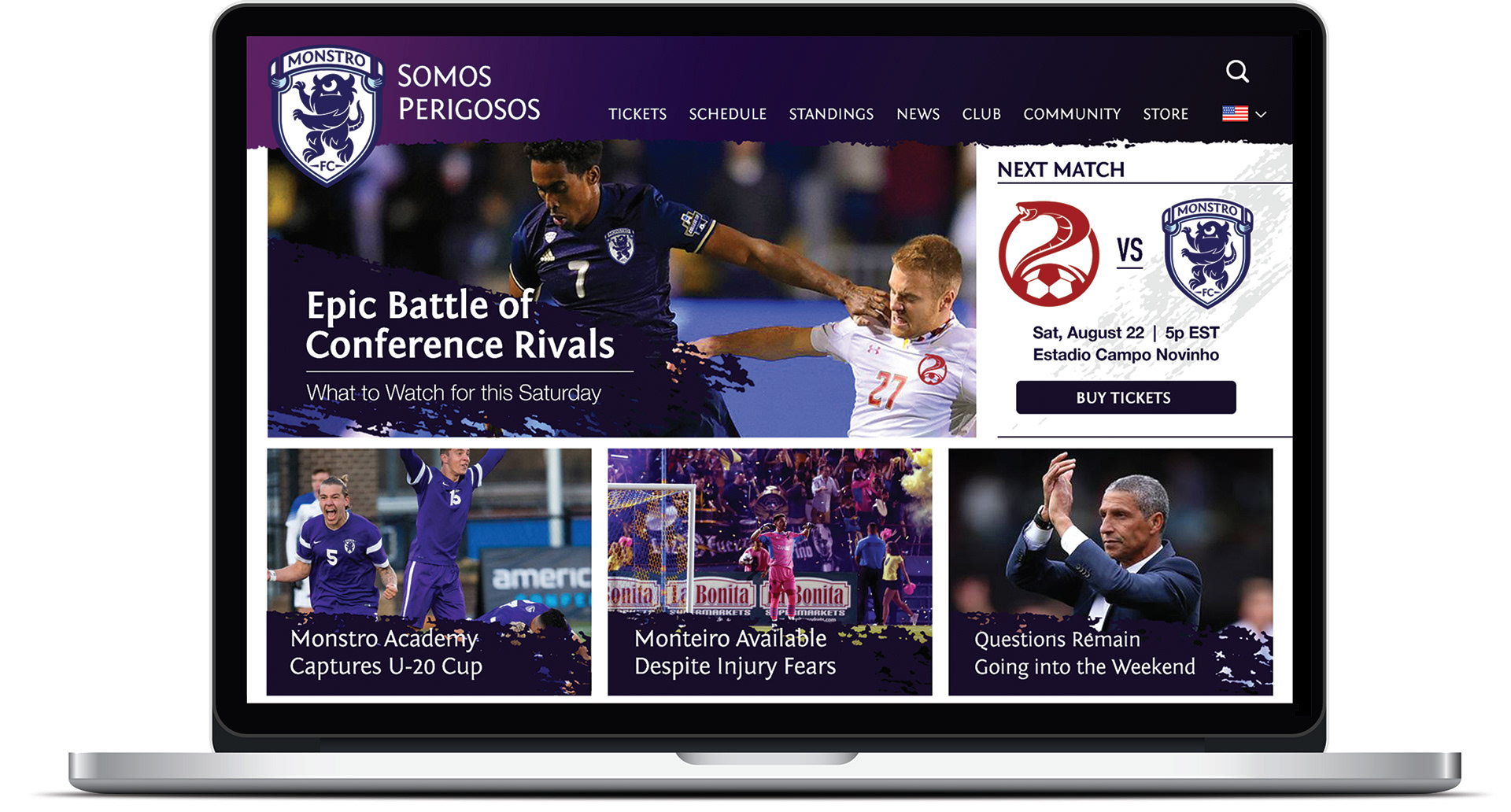 The marketing campaign for Monstro FC encompasses everything - web design, branding, social media ads, print collateral, and custom illustrations. The dynamic energy of the club's identity is firmly rooted in it's motto, "Somos perigosos!"