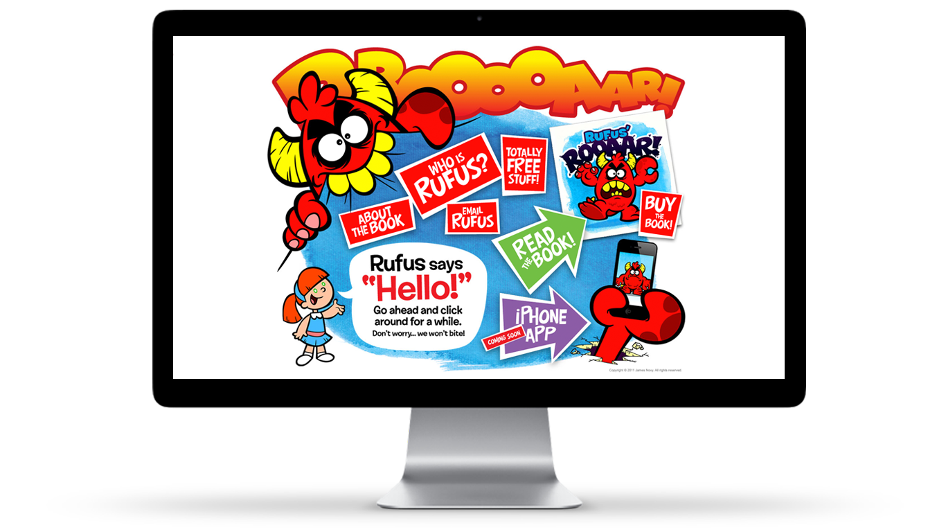 Rufus' ROOAAR! is a children's book that I wrote and illustrated and originally published with MeeGenius. I also produced animations for an interactive e-book and promotional website - rufusthemonster.com