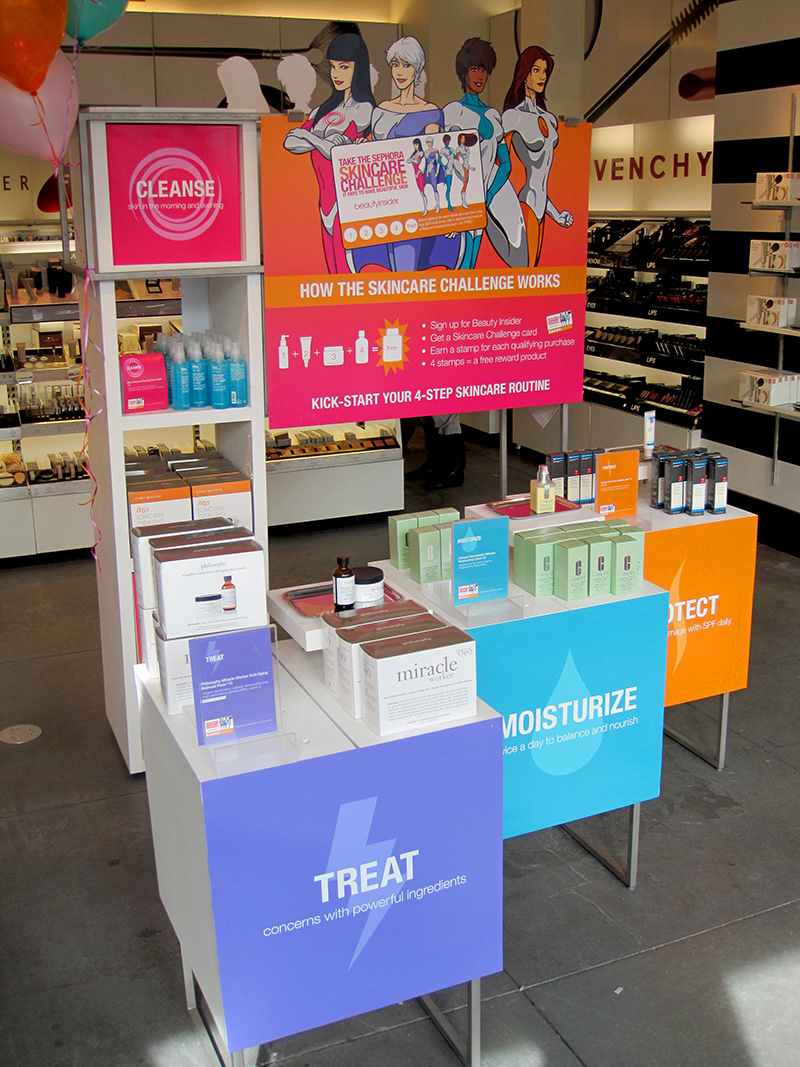 I partnered with Sephora to create four characters that were featured in their national Skincare Challenge campaign. The characters were featured in all in-store POS and environmental signage and were so popular within the company that I was also contracted to animate them as part of Sephora's US corporate sales presentation.